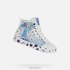 Mergaitės vidutinio kirpimo sportbačiai, sukurti pagal šaldytą kompiuterinę animaciją ir pastatyti ant vulkanizuoto gumos pado. Ypatingos geox ir Disney partnerystės produktas, ciak yra vidutinio kirpimo sportbačiai iš baltos drobės, kuriai suteikia energijos nuostabių, ryškių princesių Annos ir Elsos atspaudų. patogus, pralaidus orui ir lankstus, užtikrina didžiausią pėdos savijautą nuo ryto iki vakaro, kad mažos mergaitės galėtų daryti tai, ką moka geriausiai – svajoja.