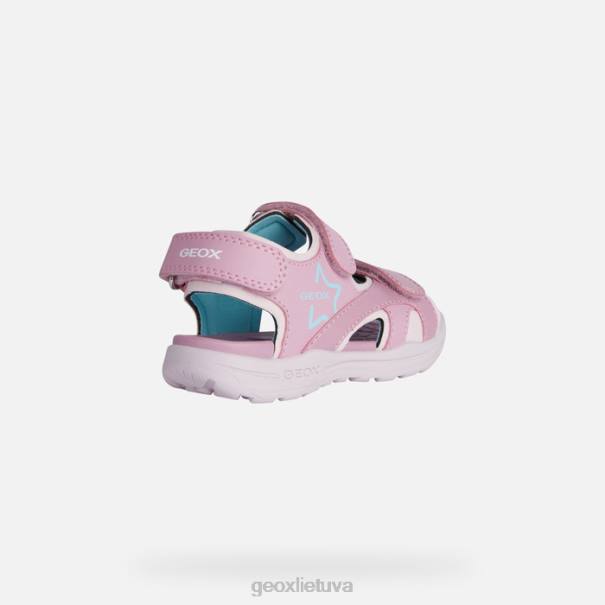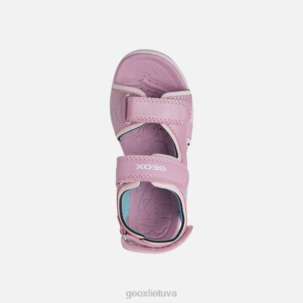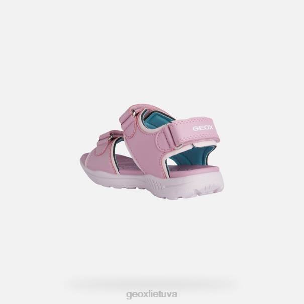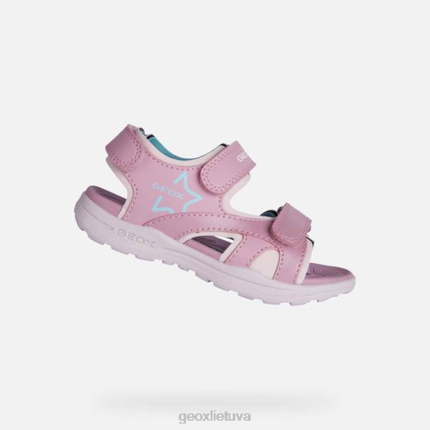 patogūs sandalai mergaitei su lengvu įsegimu ir reguliuojamu prigludimu. Praktiška ir universali, ši vaniett sandalo versija yra iš odos efekto ir perlamutrinės odos efekto medžiagos, rožinės ir jūros žalios spalvos. Ši vasariška universali kvėpuojanti avalynė išsiskiria aktyvia energija ir laisvalaikio žavesiu, todėl puikiai tinka prie neformalios aprangos.