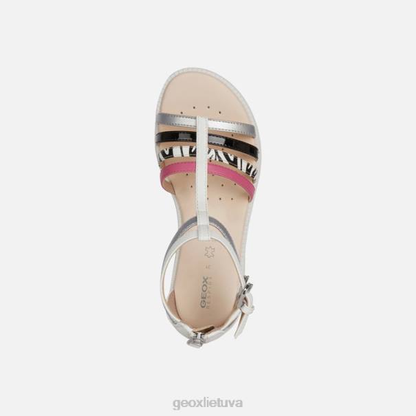 Madingi vasariški mergaičių sandalai su patogiu, kvėpuojančiu dizainu. Karly sandalai, pagaminti iš odos efekto medžiagos ir perlamutrinės odos efekto medžiagos, baltos-sidabrinės ir juodos spalvos su kontrastingomis detalėmis, turi išskirtinį dizainą su naujoviška viršutine dalimi ir reguliuojamu dvigubu kulkšnies dirželiu su sagtimi. prašmatnus, madingas žvilgsnis.