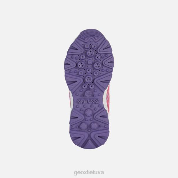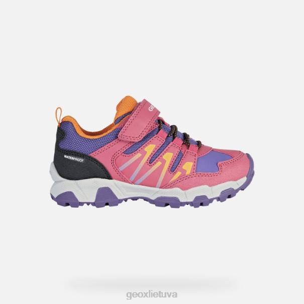 patogūs sportbačiai jaunesniajam su žygio stiliaus estetika. magnetar abx sportbačiai yra tobula lauko avalynės dalis, pagaminta iš vandeniui atsparių medžiagų, todėl pėdos bus visiškai patogios ir saugios net drėgnu oru. Pagaminta iš nailono ir atspausdintos odos efekto medžiagos, ji yra fuksijos rožinės ir violetinės spalvų paletės su geltonais akcentais.