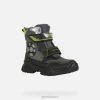 patogūs kvėpuojantys batai berniukui su storu padu. Ši nevegal abx versija, paimta iš populiariausių detalių ir robotų pasaulio, yra pagaminta iš nailono ir nudažytos odos, tamsiai pilkos ir žalios spalvos. Tai idealus būdas sutikti žiemą su stiliumi. Puiki laisvalaikio avalynė, šie jaukūs kulkšnies batai apsaugo kojas nuo šalčio, sniego ir lietaus dėl savo vandeniui atsparios apdailos, nuo ryto iki vakaro lepindami vaikus geros savijautos pojūčiu ir džiugindami juos linksmais šoniniais žibintais. div>
