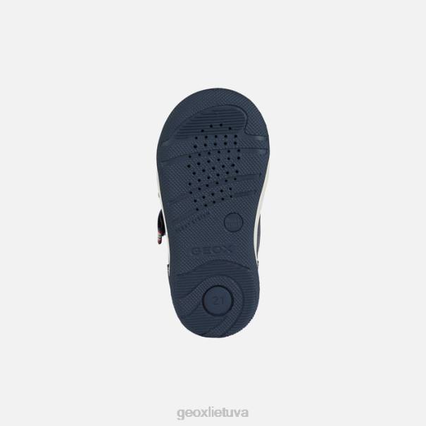 patogūs vidutinio kirpimo kvėpuojantys sportbačiai berniukui su kasdieniu atmosfera. Pagaminta iš stangrios odos ir tamsiai mėlynos zomšos, naujasis kirpimas puikiai derės prie kasdieninio stiliaus. lengva nuslysti ir reguliuoti, mažoms pėdutėms suteikia atramą ir apsaugą nuo pat pirmųjų žingsnių.