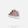 kūdikiams skirti bateliai, įkvėpti didelių mergaičių sportbačių. gražios tamsiai rožinės ir sidabrinės spalvos paletėje su širdelių raštais, biglia yra nenumaldomai miela ir patogi. Pagaminta iš margintos zomšos ir perlamutrinės odos, puikiai atrodo tiek prie kasdienės išvaizdos, tiek prie sportiškesnės aprangos.