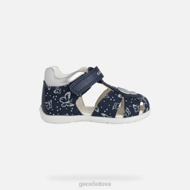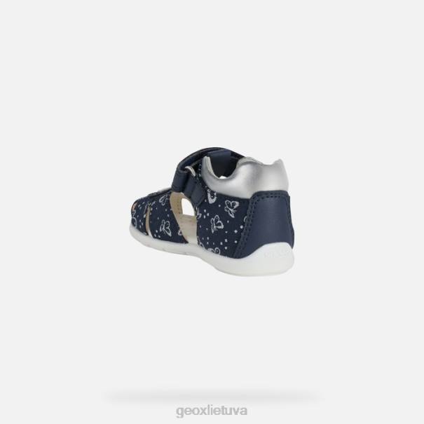 Mergaitės pirmųjų žingsnių sandalai, lepinantys mažųjų nuotykių ieškotojų pėdas atrama ir komfortu. Blizgantys eltano sandalai, kurių viršutinė dalis pagaminta iš margintos drobės ir tamsiai mėlynos ir sidabrinės spalvos odos efekto medžiagos, yra puikus būdas pakelti bet kokią aprangą su mielu moterišku įlinkimu. Idealiai tinka mažoms mergaitėms, kurios pradeda vaikščioti, yra apsauginis uždarų pirštų dizainas ir pasižymi išskirtiniu komfortu bei pralaidumu orui.