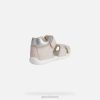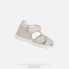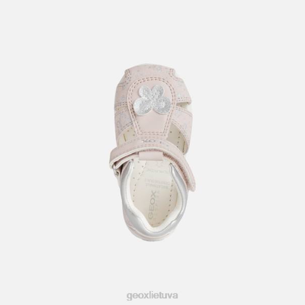 Mergaitiški patogūs pirmo žingsnio sandalai su saugiu orui pralaidžiu dizainu. Puikus partneris pirmiesiems vaikų vasaros užsiėmimams, gražūs eltano sandalai išlaiko nuostabią pusiausvyrą tarp palaikymo, saugumo ir gerovės, kartu suteikdami blizgančią moterišką estetiką. viršutinė dalis iš margintos drobės ir odos efekto medžiagos turi uždarą nosį, kad būtų užtikrinta didesnė apsauga, ir yra šviesiai rožinės ir sidabrinės spalvos, kuri iš daugelio skirtingų aprangų išryškins geriausias.