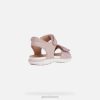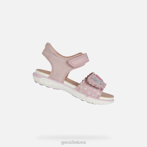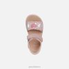 Paprasti kvėpuojantys atviri moteriški sandalai. Perteikta gražia rausvos ir sidabrinės spalvos spalvomis, Delis pritraukia visų akį su mielomis spausdintomis detalėmis ir širdies formos puošmenomis ant elastingo napos ir zomšos viršutinės dalies. ši reguliuojama avalynės dalis su dvigubu užsegimu kabliuku ir kilpa remiasi į amortizatorių padą, leidžiantį pėdai natūraliai lankstytis.
