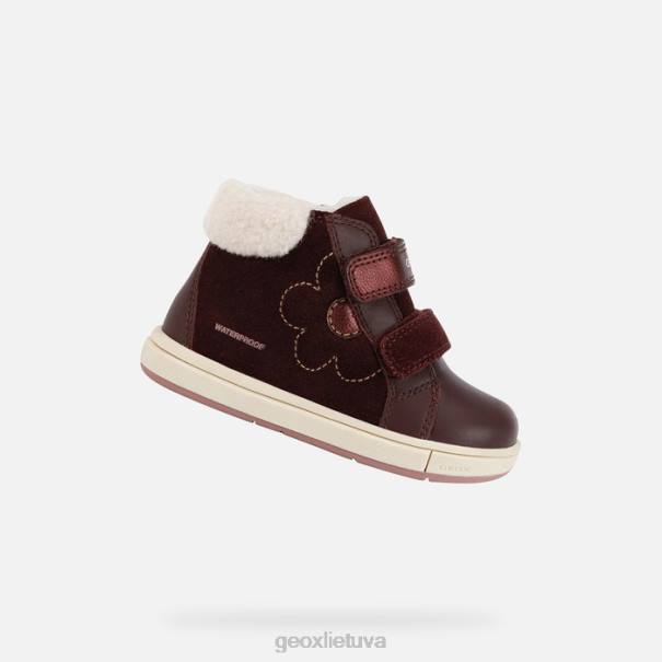 Mergaitės vidutinio kirpimo laisvalaikio sportbačiai su moterišku pojūčiu ir struktūra, kuri buvo sukurta ir prastam orui. Perteikta giliai bordo spalvos paletėje, ji turi vandenį atstumiantį viršų, pagamintą iš zomšos ir paprastos odos, papuoštą dirbtinio kailio detalėmis. jaukus ir patogus, jis buvo sukurtas siekiant suteikti nuotykių kupinoms mažoms mergaitėms apsaugą, kai jos išeina į pasaulį.