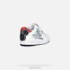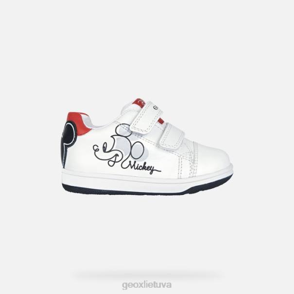 Švelniai prigludę kvėpuojantys sportbačiai kūdikiams patogiam kasdieniniam apsirengimui ir smagiai. balta viršutinė dalis su raudonomis ir juodomis detalėmis taip pat turi šoninį atspaudą ir papuošimą ant kulno, vaizduojantį peliuką Mikį. „Geox“ ir „Disney“ partnerystės produktas, „New Flick“ yra sportiška avalynė, pagaminta iš elastingos „nappa“ ir odos efekto medžiagos su reguliuojamu dvigubu užsegimu kabliu ir kilpa.