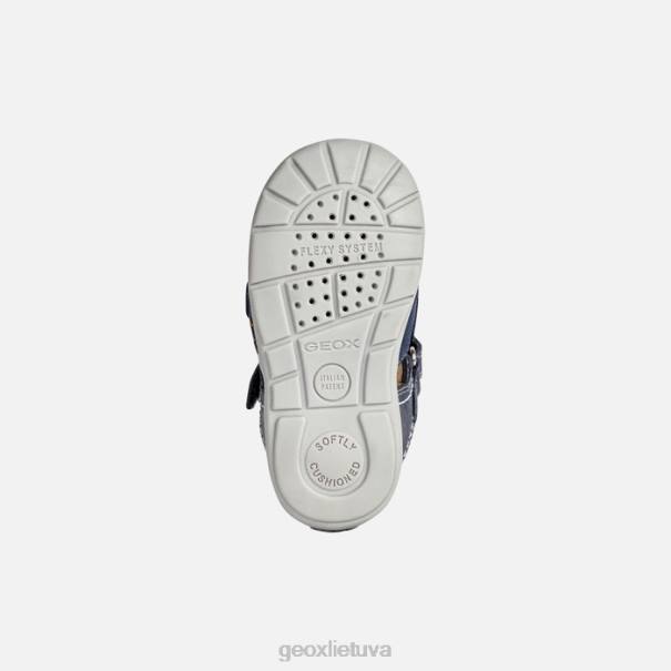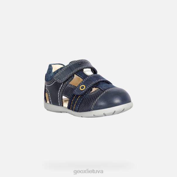 madingo dizaino kvėpuojantis pirmo žingsnio sandalas berniukui. kaytan – tai itin patogios ir lanksčios sandaros sandalai su uždarais pirštais, kurie buvo sukurti tam, kad vaikučių pėdoms būtų suteikta efektyvi atrama. Pagaminta iš vaškuotos odos ir zomšos nesenstančio tamsiai mėlyno atspalvio, ji yra minkšta, lengvai užsimaunama ir greitai priderinama. geriausias būdas užbaigti kasdienišką vasarišką įvaizdį.