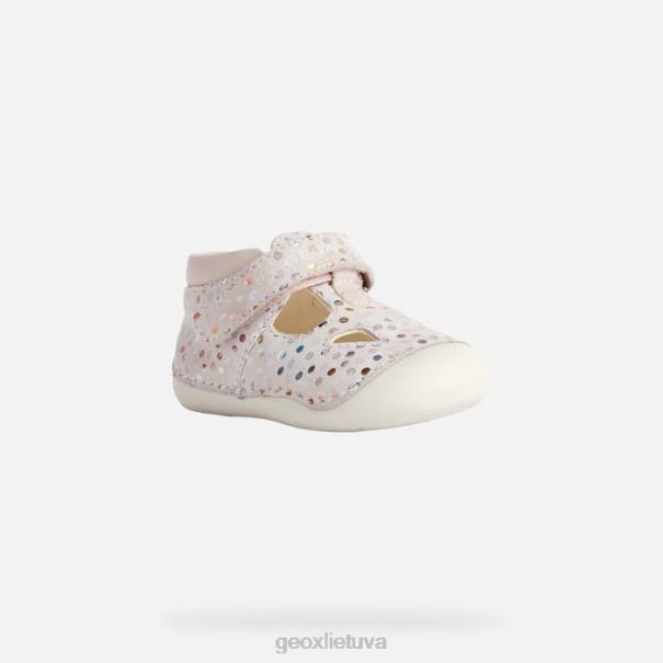 patogūs kvėpuojantys batai naujagimiams, sukurti šliaužiojimui. Tutim yra stilinga avalynė, skirta mergaitėms jaustis patogiai, kai jos pradeda judėti. Pagaminta iš margintos zomšos ir perlamutrinės odos efekto medžiagos, ji yra gana šviesiai rausvos spalvos, kuri išryškina jos blizgantį grožį. patogus ir pralaidus orui, jis yra visiškai reguliuojamas ir turi tikrai lengvą įvedimą koja.