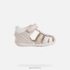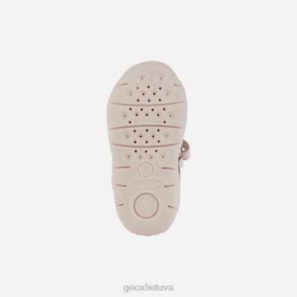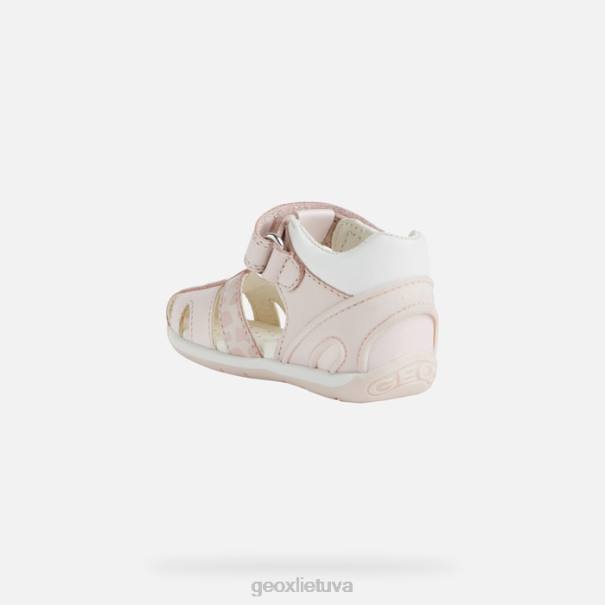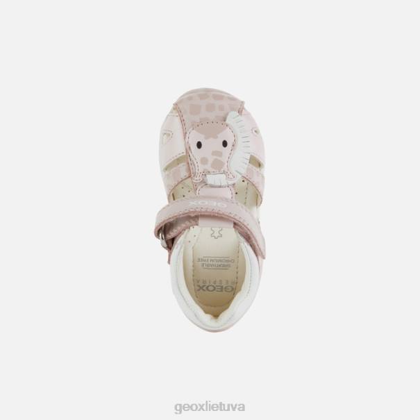 Universalūs pirmo žingsnio sandalai mergaitei, pasižymintys kasdieniu stilingumu. Kiekvienas iš jų yra sandalai su uždarais pirštais, pagaminti iš napos ir odos efekto medžiagos, šviesiai rožinės ir baltos spalvos, sukurtos siekiant suteikti vaikams saugumą ir stabilumą jiems pradedant vaikščioti. Ši avalynė, pasižyminti nenumaldomai gyvybinga ir lengvai derinama estetika, suteikia orui, komfortą, apsaugą ir lankstumą. jis buvo dar labiau paaukštintas mielu gyvūno papuošimu.