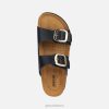 Kvėpuojantis, lengvas ir patogus sandalas moterims, pasižymintis šiuolaikišku žavesiu ir atpalaiduojančiu patrauklumu. Šios universalios versijos odinis viršus yra bebaimės juodos spalvos paletės su dviejų juostų dizainu. brionia buvo sukurta stilingiems miesto miestiečiams ir paryškins kasdienę šilto oro aprangą savitu prisilietimu.