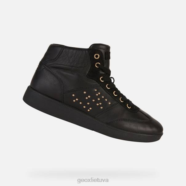 vidutinio kirpimo moteriški sportbačiai su laisvalaikio šiuolaikiška estetika. Meleda sportbačiai, pasižymintys patrauklia ir šiuolaikiška krepšinio estetika, puikiai dera prie laisvalaikio aprangos ir neformalios išvaizdos. elastinga visiškai juoda viršutinė dalis buvo papuošta mažais smeigtukais ir blizgančiomis aukso atspalvio detalėmis.