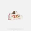 madingi, orui pralaidūs, žemi, Disnėjaus princesės tematikos sportbačiai mergaitei. Pagaminta iš šviesaus dramblio kaulo spalvos drobės, ciak yra žavinga stilingumo ir mados nuojautos sintezė. Jame yra patogi viršutinė dalis su margintomis detalėmis, siuvinėtomis gėlėmis ir įvairiaspalvėmis akutėmis. „Geox“ ir „Disney“ bendradarbiavimo produktas – bet kokiai aprangai suteiks magijos.