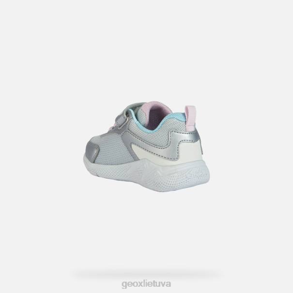 lengvi patogūs sportbačiai mergaitei su bėgimo batelių stiliumi. Pagaminta iš tinklelio ir odos efekto medžiagos, „sprintye“ išsiskiria šiuolaikiška šiuolaikine estetika, kuri perima bėgimo batelių pasaulio užuominas. šios patogios, kvėpuojančios, sidabrinės spalvos kedų versija su šviesiai mėlynais akcentais turi ypač lengvą struktūrą ir kasdienei išvaizdai suteiks moteriškumo.