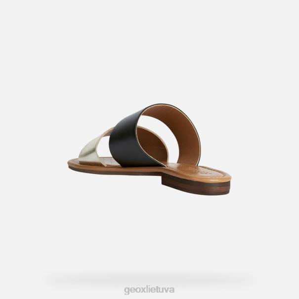 Kvėpuojantis, lengvas plokščias sandalas moterims, pasižymintis švelnia šiuolaikiška estetika ir veržlia miesto atmosfera. Pagaminta iš paprastos ir metalinės odos, ši drąsi juodos ir šviesiai auksinės spalvos versija taps garderobo darbo arkliuku. puikiai nešiojamas ir lengvai įsegamas kojomis, „sozy s“ turi dviejų juostų viršutinę dalį, kuri skleidžia nerūpestingą moteriškumą ir puikiai išryškins neformalų stilių.