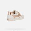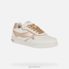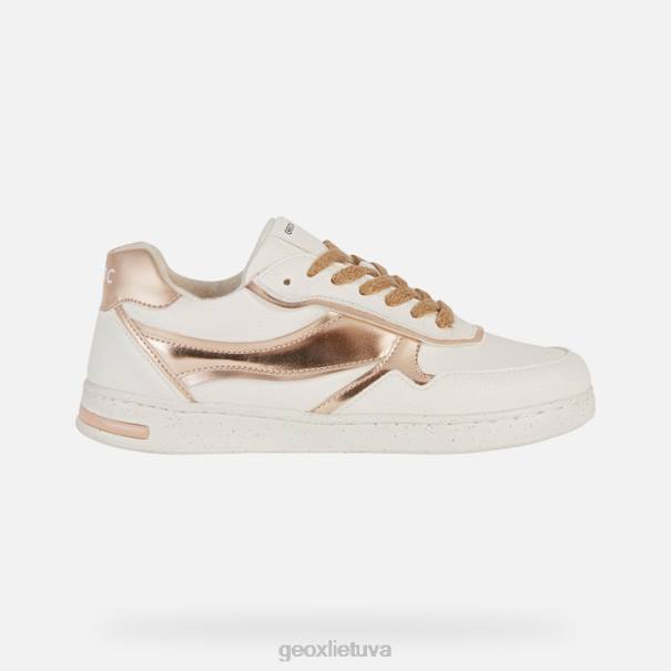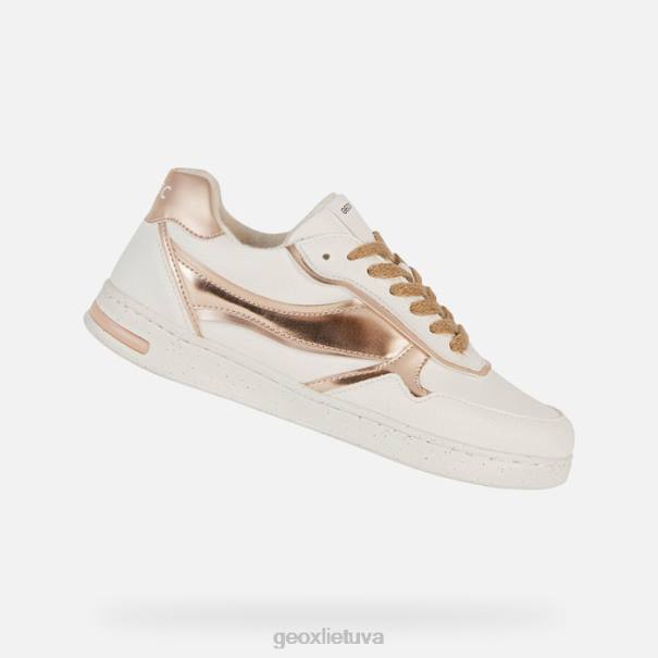 Moteriški sportbačiai su teniso batelių estetišku ir šiuolaikišku dizainu. patraukli, rafinuota jaysen versija, kuri priklauso naujai kapsulių kolekcijai, kurią sukūrė geox bendradarbiaudama su acbc, pirmaujančia ekologiškos avalynės rinkos žaidėja ir perteikta subtiliu balto ir rožinio aukso deriniu. Pagaminta iš odos efekto medžiagos ir perlamutrinės odos efekto medžiagos, ji yra puikus komforto ir moteriškumo derinys. šie batai buvo pagaminti iš perdirbtų ekologiškų medžiagų, kurių sudėtyje nėra gyvūnų. jame yra dviejų skirtingų rūšių raišteliai, kurie taip pat yra nekenksmingi aplinkai – vienas iš visiškai perdirbamo džiuto pluošto, o kitas iš rebotilijos – medžiagos, gautos iš perdirbtų naminių gyvūnėlių butelių.