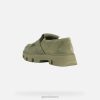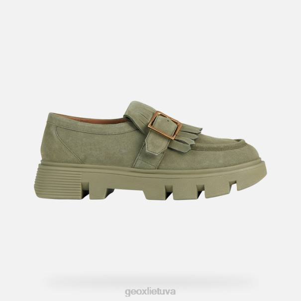 Moteriškas batų komplektas ant stambaus pado, pasižymintis kasdienine šiuolaikine estetika. ši originali ir itin madinga pistacijų-žalios spalvos versija pasižymi zomšos viršutine dalimi, papuošta kilpiniais kutais, ir metaline sagtimi. patogus ir kvėpuojantis, vilde buvo sukurtas atsižvelgiant į miesto gyvenimo būdą ir dėl savo drąsios estetikos yra idealus būdas paryškinti vienspalvę aprangą.