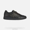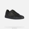 Moteriški sportbačiai su šiuolaikiškai atrodančiu teniso batų dizainu. ši visiškai juoda versija yra pagaminta iš minkštos napos, papuoštos mažomis auksinėmis smeigėmis. kvėpuojantis ir patogus, meleda suteiks stilingą natą į kasdienę kasdienę aprangą.