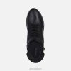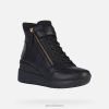 Bėgimo batelių stiliaus moteriškų kulkšnies batų komplektas ant pleišto. zosma yra universalūs juodi batai, pagaminti iš nappa ir zomšos, pasižymintys neformaliu šiuolaikiškumu, kurį dar labiau sustiprino įmontuotas pleištas, sukurtas užtikrinti maksimalų komfortą bet kokiomis aplinkybėmis.