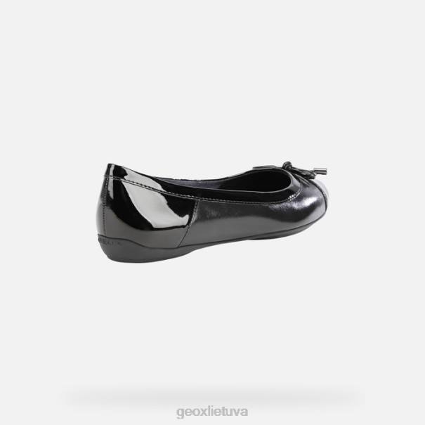 Moterų baleto butas su lanko detalėmis ir užapvalintais pirštais su madinga neformalia išvaizda. rafinuoto paprasto dizaino charlene turi įspūdingą juodą viršų iš lakinės ir blizgios odos mišinio. kvėpuojantis ir patogus, užtikrina puikią savijautą visą dieną.
