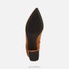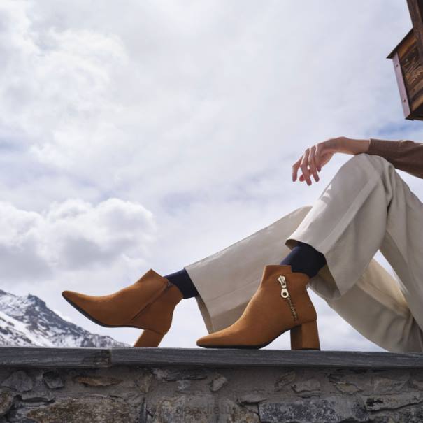 Moteriški batai smailia nosimi, tinkantys biurui ir elegantiškesnėms aprangoms. Pagaminta iš minkštos zomšos rafinuotos konjako rudos spalvos paletės, bigliana paryškins miesto stilių rafinuotu šiuolaikiškumu. pastatytas ant patogaus kulno, turi oficialų stilių ir madingą išvaizdą, neprarandant komforto pėdoms.