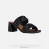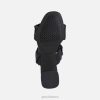 patogūs moteriški sandalai ant vidutinio kulno su šiuolaikiška miesto estetika. Pagaminta iš elastingos visiškai juodos „nappa“, papuoštos rafinuotu raukšlių efektu, ši „genziana“ vidurio sandalo versija išsiskiria šiuolaikišku miesto patrauklumu, kuris niekada neišeis iš mados. idealus būdas užbaigti apsirengimą nuo stalo iki vakarienės – jis sėdi ant praktiško vidutinio aukščio kulno, kuris pailgina figūrą, o pėdoms suteikia absoliutaus komforto pojūtį.