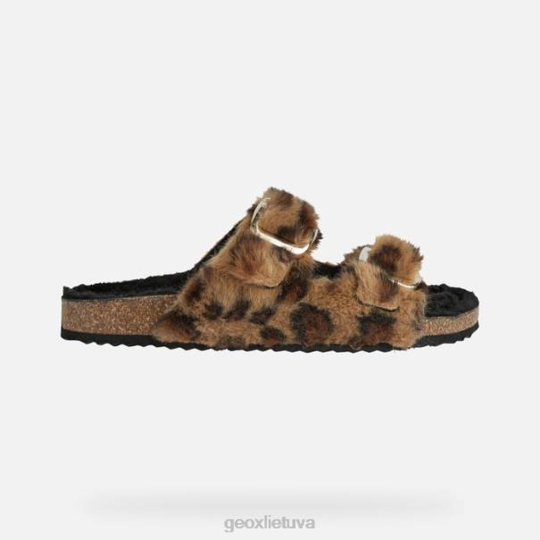 Moteriški jaukūs itin patogūs dirbtinio kailio sandalai. Pagaminta pagal klasikinį nesenstantį gyvūnų raštą tabako rudos spalvos paletėje, puikiai subalansuojanti moteriškumą ir prabangą. Lengvas, lengvai įeinamas kojomis, brionia yra puikus būdas neįprastai paįvairinti laisvalaikio aprangą arba pagražinti kojas vaikščiojant po namus.