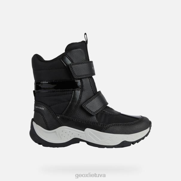 Neperšlampami jaukūs mergaičių batai su tradiciniu stilingumu. Įkvėpimo semiamasi iš klasikinio sniego batų stiliaus, sentiero abx yra juodos paletės avalynė, pagaminta iš perlamutrinės odos efekto medžiagos ir nailono. Pagaminta iš vandeniui atsparių medžiagų, garantuojama, kad pėdos sušils, kvėpuoja ir gerai jaučiasi bet kokia proga.