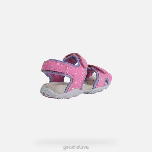 patogūs, kvėpuojantys sandalai mergaitei su moteriška romantiška atmosfera. roxanne sandalai yra idealus sprendimas mažųjų nuotykių ieškotojų vasaroms. Pagaminta iš odos efekto medžiagos ir fuksijos-rožinės ir alyvinės spalvos likros, tai puikus moteriškumo ir romantizmo mišinys su gražių žvaigždžių kaskadomis, jau nekalbant apie labai funkcionalią struktūrą. geros savijautos ir komforto garantija, jis buvo sukomplektuotas su praktiniais dirželiais, kad būtų lengva įvesti koją, ir reguliuojamas prigludimas.