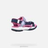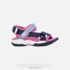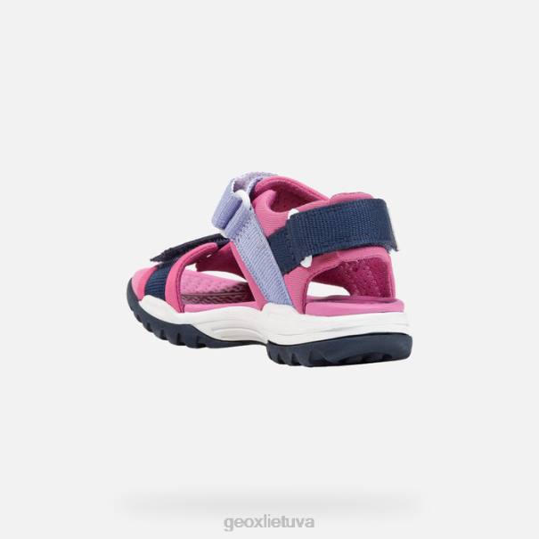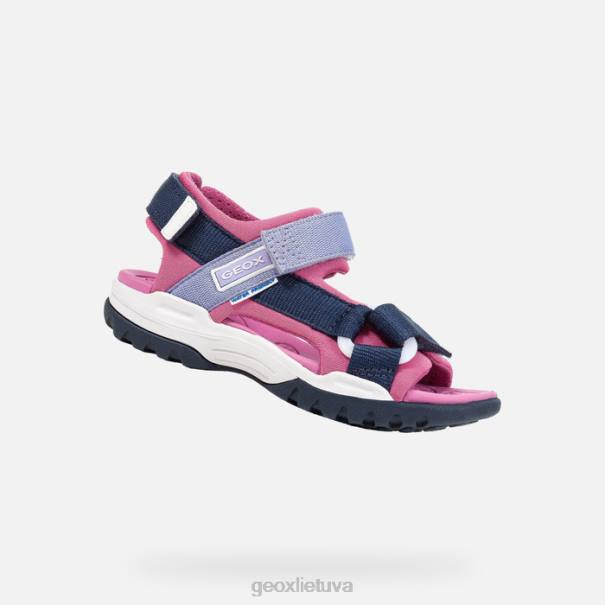 patogūs kvėpuojantys sandalai mergaitei su lauko estetika. Praktiško vandeniui nekenksmingo dizaino borealis bus vasaros gelbėtojas šiltuoju metų laiku. likros ir audinio viršutinė dalis pasižymi patraukliu tamsiai mėlynos ir fuksijos rožinės spalvos plokščių sąveika.