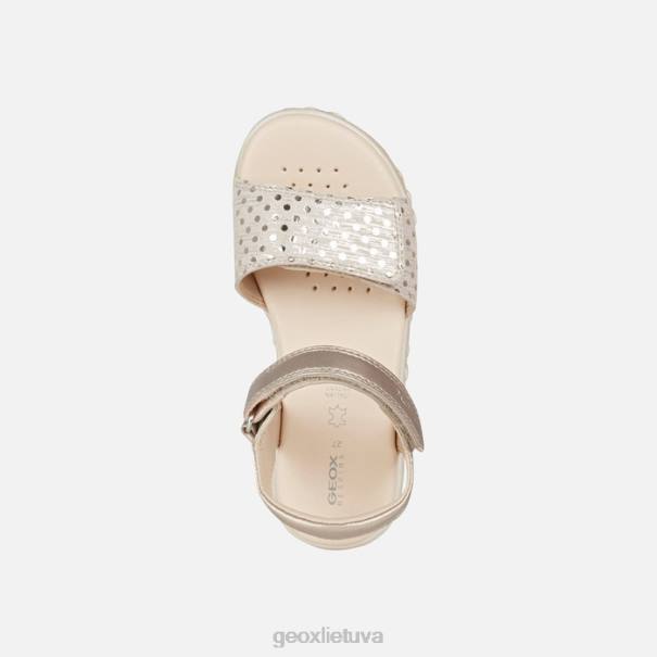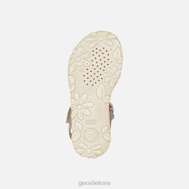 Mergaitės reguliuojamos vasarinės basutės su patogiu orui pralaidžiu dizainu. Haiti basutės, specialiai sukurtos gležnėms mergaičių pėdutėms, turi praktiškus reguliuojamus dirželius, patogią odinę padą ir batviršį, pagamintą iš reljefinės zomšos ir universalaus smėlio spalvos perlamutrinės odos efekto medžiagos. jis buvo užbaigtas nuostabiomis spalvingomis gėlėmis, įspaustomis pado apačioje, kurios padeda pagerinti sukibimą.
