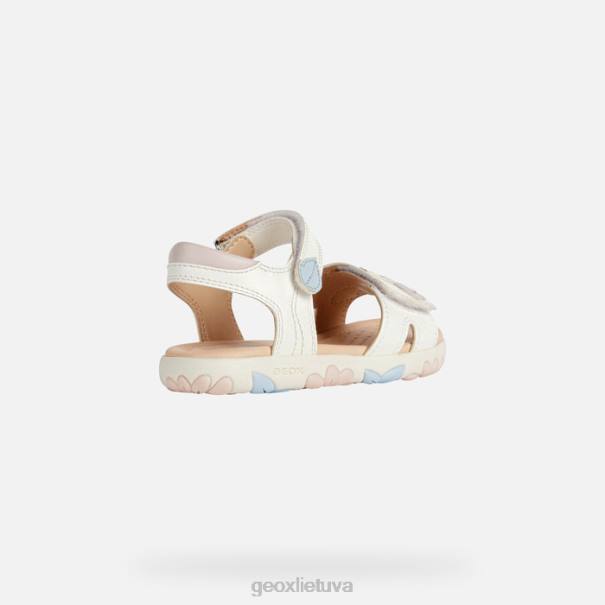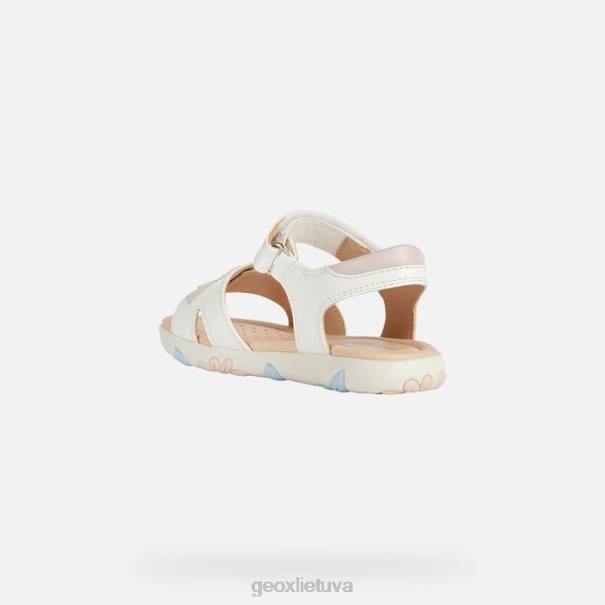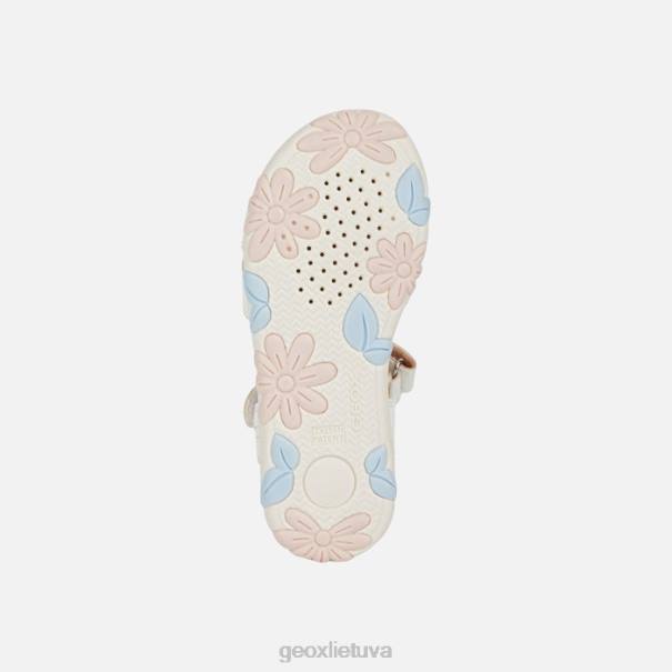 patogūs, kvėpuojantys basutės mergaitei, pasižyminčios energingumu ir moteriška estetika. perteikta švelnia balta ir šviesiai rožine spalva, o viršutinė dalis pagaminta iš odos efekto medžiagos, papuoštos romantiškomis gėlėmis. Haityje yra praktiškas užsegimas su kabliuku ir kilpa, kuris leidžia lengvai įeiti koja ir be vargo naudoti kasdien.
