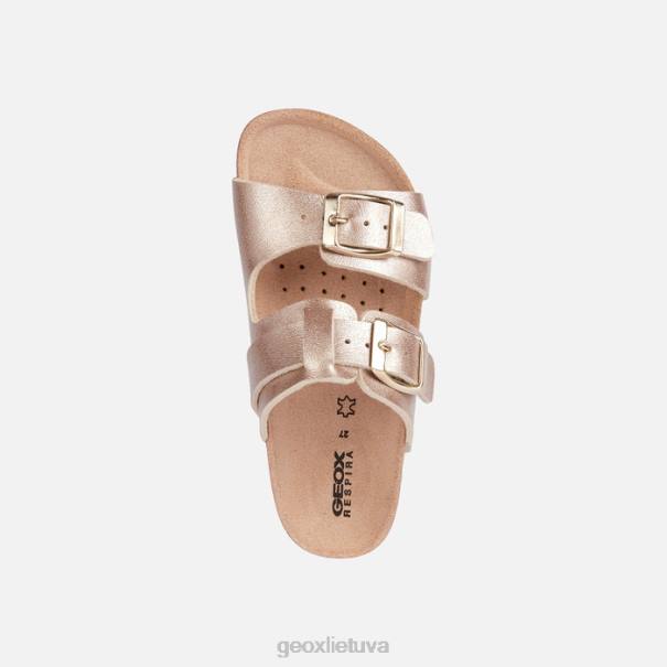 mergaitiškas anatominis sandalas su laisvalaikio atmosfera ir atvira nugara su reguliuojamomis sagtimis. Ši madinga rožinio aukso spalvos adriel versija bus lengvai derinama su įvairiais drabužiais ir pagrindinė vasaros sezono garderobo detalė, nesvarbu, ar tai būtų mieste, ar atostogaujant. lengvas ir pralaidus orui, jis pagamintas iš itin blizgios odos efekto medžiagos ir bet kurią aprangą paryškins rafinuotu blizgesiu.