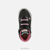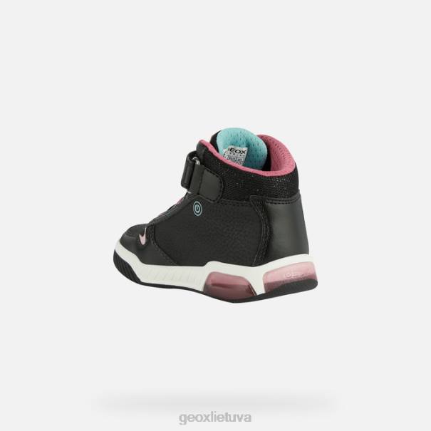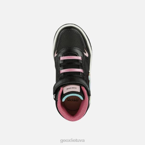 mergaitiški sportbačiai, įkvėpti krepšinio pasaulio su šviesomis ir vienaragio puošmena. kvėpuojantis ir patogus su labai madinga krepšinio atmosfera, inek turi patraukti mažų mergaičių vaizduotę su moteriška nuojauta ir spalvinga vienaragio dekoracija ant išorinės kojos. Pagaminta iš spausdintos odos efekto medžiagos ir perlamutrinės odos efekto medžiagos derinio juodoje paletėje, jis remiasi į šviesų padą, kuris pagyvins laisvalaikio įvaizdį ir kasdienius laisvalaikio drabužius.