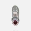 patogūs kvėpuojantys sportbačiai mergaitei, atitinkantys naujausias mažų mergaičių mėgstamas madas. Tamsiai sidabrinė viršutinė dalis, pagaminta iš odos efekto medžiagos ir perlamutrinės lakinės odos efekto medžiagos, pasižymi purpuriniais akcentais ir moteriškomis detalėmis, o maltinui suteikia ikonišką krepšinio atmosferą. už aktyvią estetiką, spalvingą atmosferą ir nenugalimą žavesį.