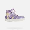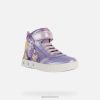Mergaitės vidutinio kirpimo sportbačiai, gulintys ant pado su šviesomis ir skirti rapunzeliui. Puošniomis Disnėjaus dekoracijomis, vidutinio kirpimo skylin sportbačiai turi viršutinę dalį, pagamintą iš alyvinės ir geltonos spalvos marginto audinio su gražiais papuošimais ir spausdintomis rapunzelio nuotraukomis šonuose. Su detalėmis iš perlamutrinės lakinės odos efekto medžiagos, jis buvo sukurtas taip, kad pamalonintų pėdas su ypatingu komfortu ir puikia savijauta.