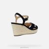 Moteriški universalūs patogūs sandalai ant pleišto. „soleil“ – tai klasikiniai vasariniai sandalai ir moteriškos spintos detalės, kurios išspręs bet kokią stiliaus dilemą. Pagaminta iš juodos zomšos, lengvai priderinamo dizaino, kuris papildys laisvalaikio ir laisvalaikio aprangą, remiasi į espadrilės stiliaus džiuto pleištą ir pailgins figūrą savo vidutinio aukščio kulnu.