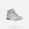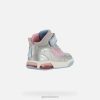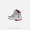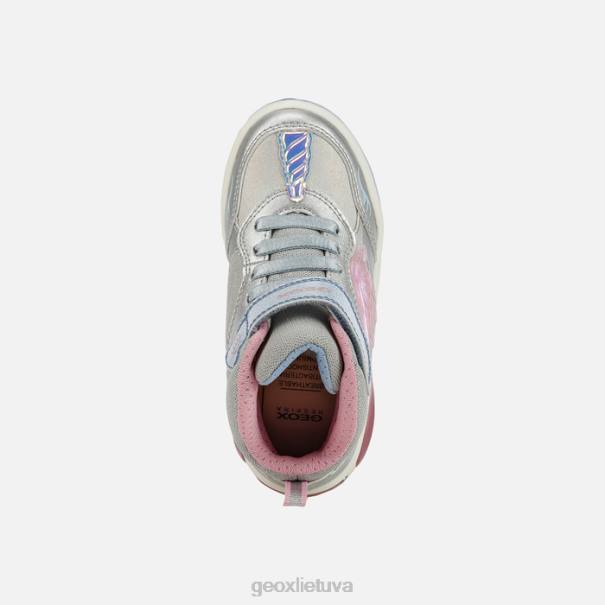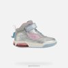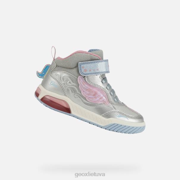 mergaitiški sportbačiai su šviesomis ir dekoratyviniais sparneliais semiasi įkvėpimo iš krepšinio pasaulio. kvėpuojantis ir patogus su labai madinga krepšinio atmosfera, inek pritraukia mažų mergaičių vaizduotę su moteriška nuojauta. pagamintas iš perlamutrinės odos efekto medžiagos ir audinio derinio, sidabro ir šviesiai mėlynos spalvos, papuoštas blizgančiomis detalėmis. Jis remiasi į šviesų padą, kuris pagyvins laisvalaikio įvaizdį ir kasdienius laisvalaikio derinius.