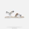 mergaitiški sandalai, užtikrinantys aukštą kvėpavimą ir komfortą. Idealus partneris vasaros nuotykiams, karly pasižymi laiko nepalankiu dizainu, todėl puikiai tinka kasdieniam dėvėjimui. iš patentuoto efekto medžiagos ir perlamutrinės odos efekto medžiagos, pagamintos iš baltos ir sidabrinės spalvos, sulenkta nugarėlė užkariaus tiek didelių, tiek mažų merginų širdis, o taip pat puikiai atrodys ir patogiai. div>