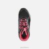 mergaitiški neperšlampami kulkšnies batai įkvėpimo semiasi iš klasikinio sniego batų dizaino. komfortas, apsauga nuo prastų oro sąlygų ir pralaidumas orui susilieja sentiero – klasikinės išvaizdos sniego batuose, paaukštintuose moderniomis aukštųjų technologijų detalėmis. Pagaminta iš juodos odos efekto medžiagos su perlamutriniais fuksijos ir rožinės spalvos nailono akcentais, ši vandeniui atspari avalynė yra puikus sprendimas ilgiems kaimo žygiams ar žiemos pramogoms lauke.