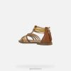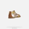 Mergaitiški vasariški sandalai, pasižymintys etninėmis nuojautomis ir pasižymintys patogiu, kvėpuojančiu dizainu. Karly sandalai, pagaminti iš šiltų rudos, geltonos ir auksinės spalvos, primenančios tolimus egzotiškus kraštus, pasižymi naujovišku dizainu. jis buvo visiškai pagamintas iš odos efekto medžiagos ir nepriekaištingai užbaigtas reguliuojamu dvigubu kulkšnies dirželiu su sagtimi, kad būtų labai madingas elegantiškas prisilietimas.