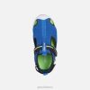 Berniukas nelaidus vandeniui, patogus ir kvėpuojantis sandalas. Su praktiška apsaugine apsauga ant piršto ir kulno, bridėjų sandalas užtikrina, kad vaikai išliktų saugūs, kol jie mėgaujasi įspūdingais vasaros nuotykiais. Karališkai mėlynos spalvos tinklelio, jis buvo energingas su neoninės žalios spalvos detalėmis ir remiasi į kontrastingą baltą padą.