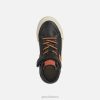 patogūs vidutinio kirpimo sportbačiai berniukui, suteikiantys geros savijautos pojūtį ir daug miesto nuojautos. Su viršutine dalimi, pagaminta iš vaškuotos odos efekto medžiagos ir juodos ir oranžinės spalvos nailono, „Alonisso“ pasižymi šiuolaikiškai įmantriu dizainu ir remiasi ant vulkanizuotos gumos pado. Pralaidūs orui ir lankstūs, šie praktiški batai puikiai papildys bet kokią kasdienę išvaizdą ir buvo skirti dėvėti kasdien.