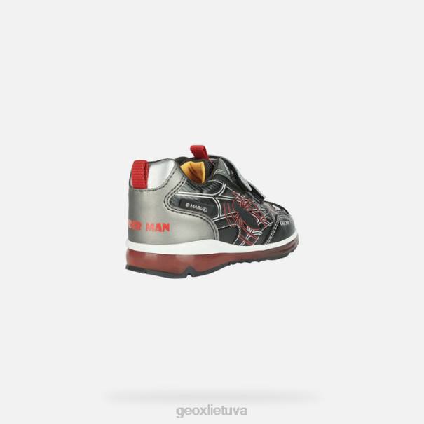 Paprasto dizaino kvėpuojantys vidutinio kirpimo sportbačiai kūdikiams, skirti mažiesiems žmogaus voro gerbėjams. „Geox“ ir „Marvel“ partnerystės produktas – juodos ir švino pilkos spalvos paletė su raudonos spalvos dėmėmis. viršutinė dalis pagaminta iš margintos ir paprastos odos efekto medžiagos mišinio, o permatomas šviečiantis padas suteikia daugiau linksmybių kiekviename žingsnyje.