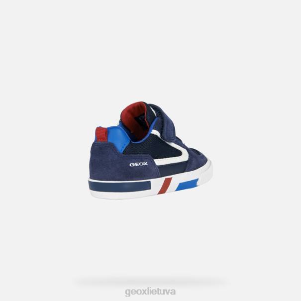 Paprasti kvėpuojantys žemi sportbačiai berniukams ant vulkanizuoto pado. Kilwi, perteiktas tamsiai mėlynos ir baltos spalvos spalvomis, gali pasigirti originaliu dizainu su senoviniais atspalviais. jis pagamintas iš tinklelio ir zomšos ir suteikia visą patogumą, lankstumą ir atramą, kurios vaikams reikia dienos metu.