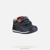 kūdikiui skirti batai, kurie žengia pirmuosius žingsnius, pasižymintys kasdienine atmosfera ir daugybe aktyvių patrauklių savybių. Pagaminta iš tamsiai mėlynos odos ir zomšos su raudonomis detalėmis, kiekvienas yra puikus partneris vaikų atradimams naujame įdomiame pasaulyje. lengva užsivilkti ir reguliuoti su praktišku dvigubu velcro dirželiu, jis užtikrina išskirtinį saugumą ir pralaidumą orui, lepindamas pėdas geros savijautos pojūčiu.