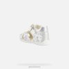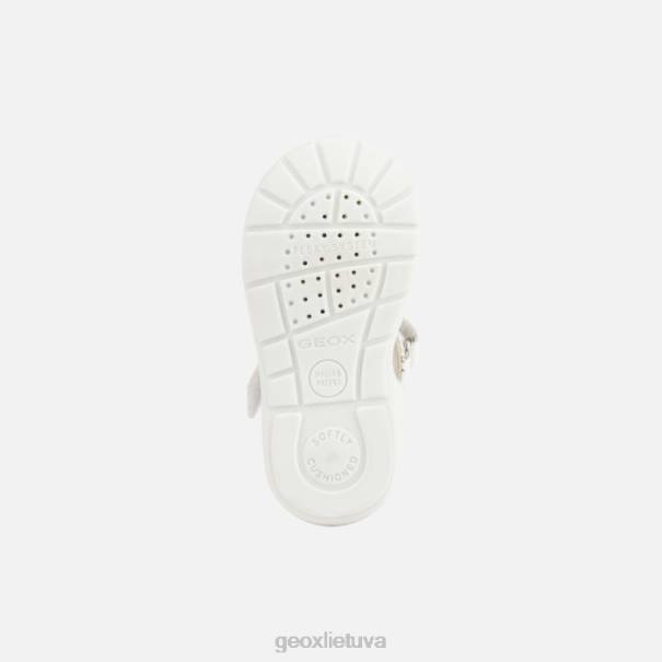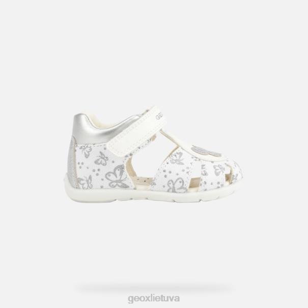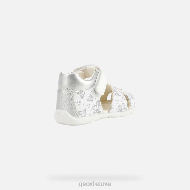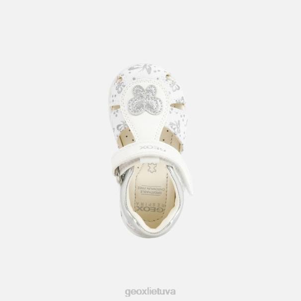 mergaitiški sandalai, užtikrinantys gerą savijautą ir palaikymą, kai ji pirmą kartą pradeda mažėti. Pagaminta iš spausdintos drobės ir odos efekto medžiagos, ši uždara eltano sandalo versija yra baltos ir sidabrinės spalvos ir lydės mažas mergaites, kurios vasarą mėgaujasi pramogomis ir žaidimais. su uždaru dizainu, kad pėdos būtų labiau apsaugotos, yra gana moteriškos estetikos ir yra puikus būdas paaukštinti bet kokią aprangą neatsisakant komforto ir pralaidumo orui.
