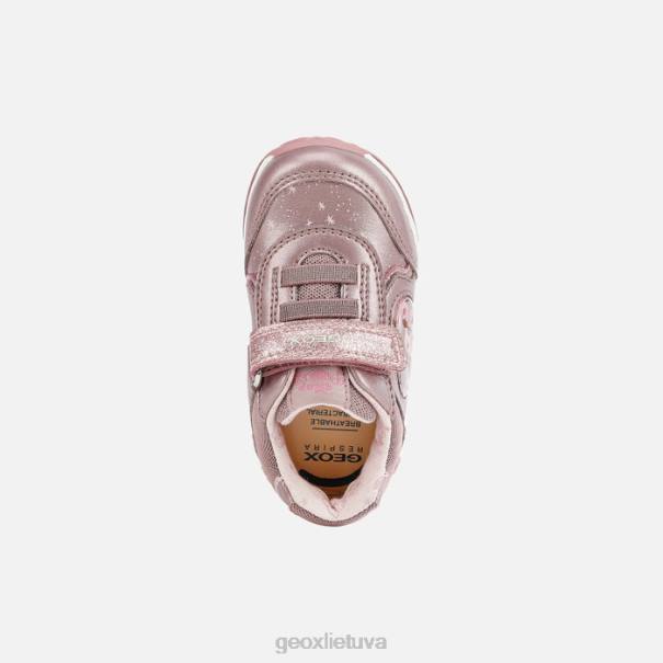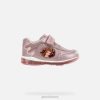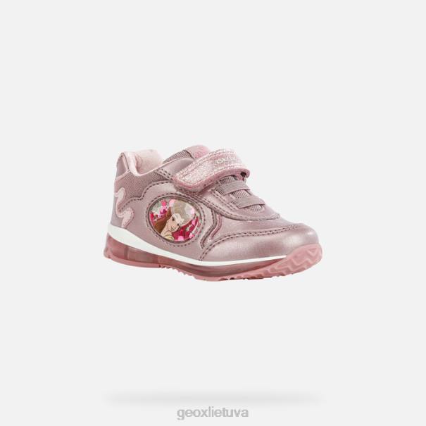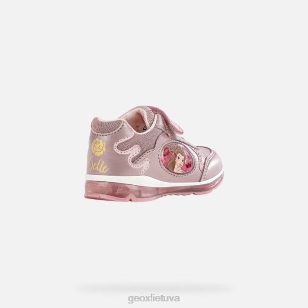 mergaitiški sportbačiai su grožiu ir žvėries puošmena. patogus, pralaidus orui ir itin patrauklus, todo sportbačiai turi permatomą padą su šviesomis, kurias galima įjungti ir išjungti specialiu mygtuku. Šie sportbačiai, pagaminti iš tamsiai rožinės spalvos perlamutrinės odos efekto medžiagos, turi šoninę puošmeną, vaizduojančią princesę gražuolę, apsuptą mažų širdelių, kurios plazdena batui judant.