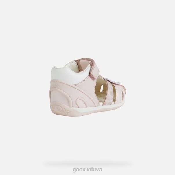 Universalūs pirmo žingsnio sandalai mergaitei, pasižymintys kasdieniu stilingumu. Kiekvienas iš jų yra sandalai su uždarais pirštais, pagaminti iš napos ir odos efekto medžiagos, šviesiai rožinės ir baltos spalvos, sukurtos siekiant suteikti vaikams saugumą ir stabilumą jiems pradedant vaikščioti. Ši avalynė, pasižyminti nenumaldomai gyvybinga ir lengvai derinama estetika, suteikia orui, komfortą, apsaugą ir lankstumą. jis buvo dar labiau paaukštintas mielu gyvūno papuošimu.